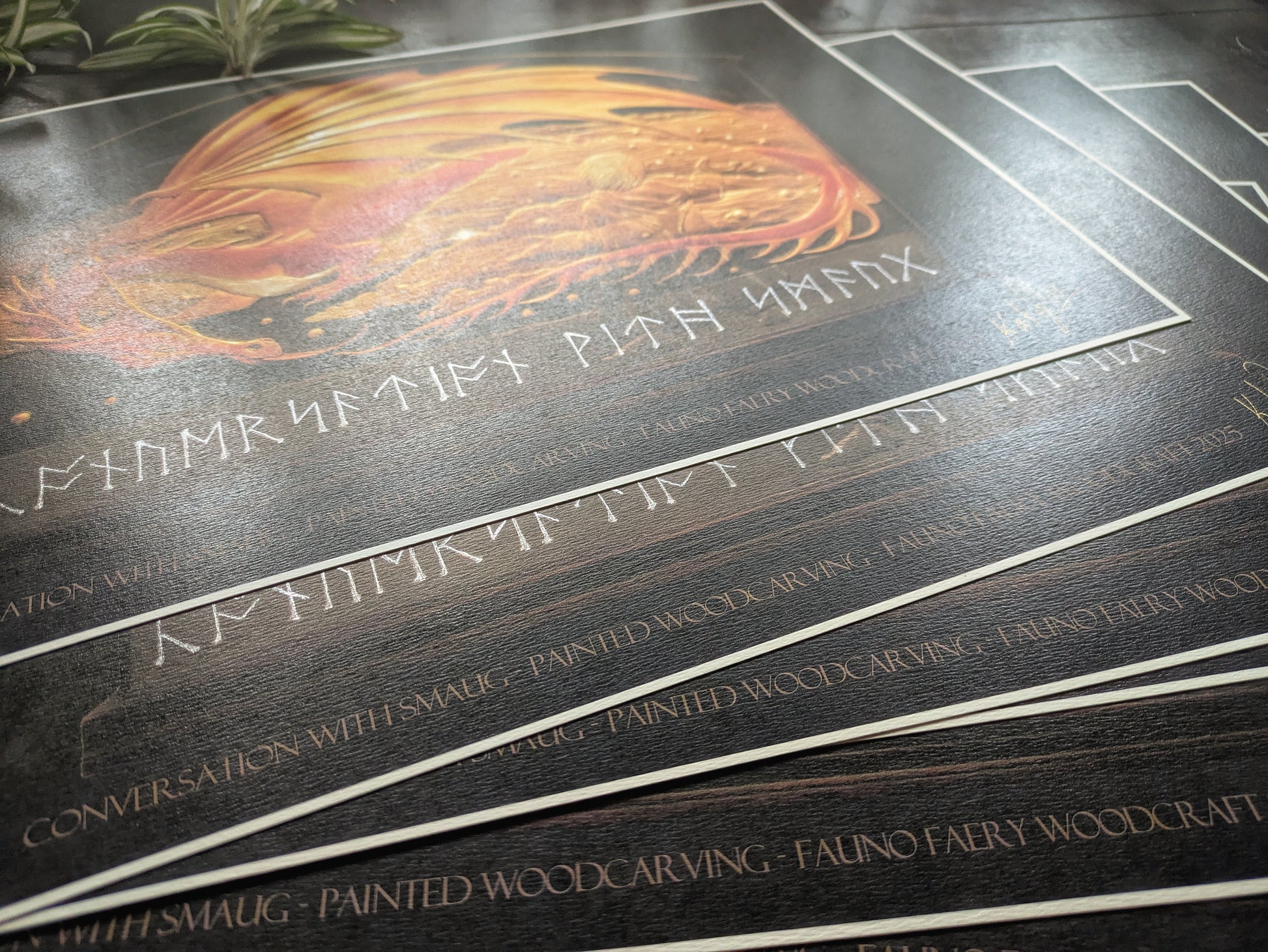 Conversation with Smaug is Fauno's most iconic piece and we decided to have it printed locally to offer it as an affordable hand-signed, hand-numbered paper version to our Smaug's and Bilbo's admirers.